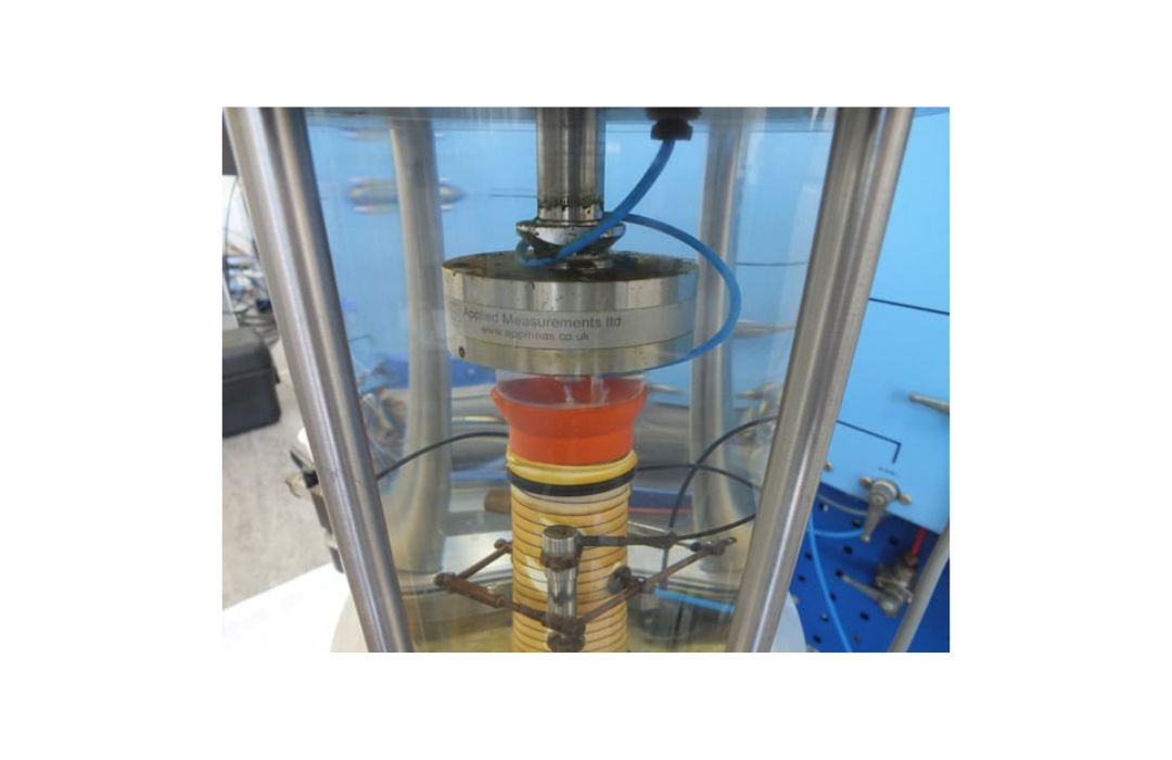 - Hazırlanan numune, üç eksenli test cihazına yerleştirilir. Üç eksenli test cihazı, numuneye üç yönden eşit şekilde yük uygulayarak zemin davranışını ölçer.